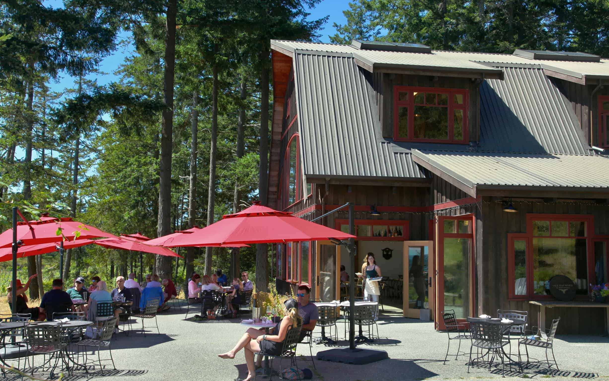 The Feral Goat Bistro at Sage Hayward Vineyards offers breathtaking Gulf Islands views. Dine indoors or on the patio, overlooking vineyards, a serene lake, and the ocean. Our menu features local ingredients from Campbell Farms.